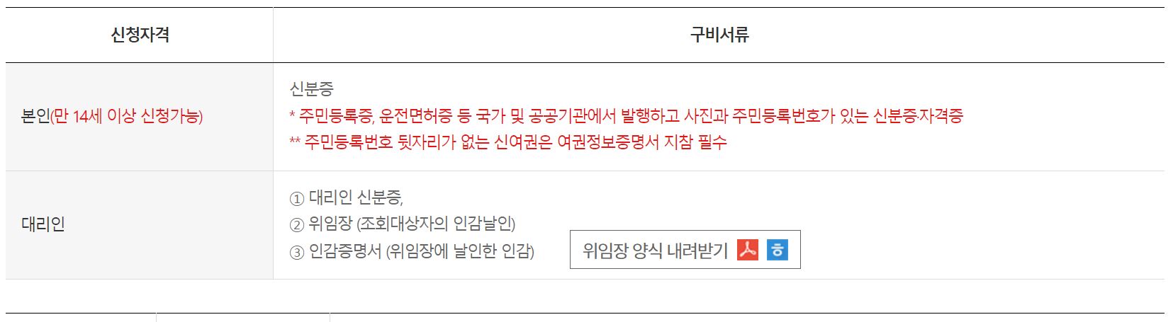 만 14세 미만의 경우, 법정대리인의 동의가 필요하므로 법정대리인의 방문을 통한 조회만 가능
