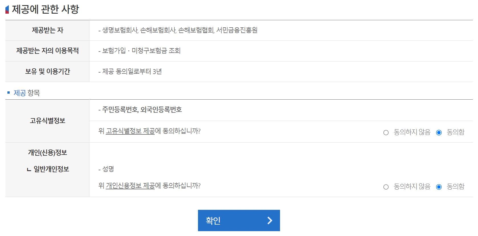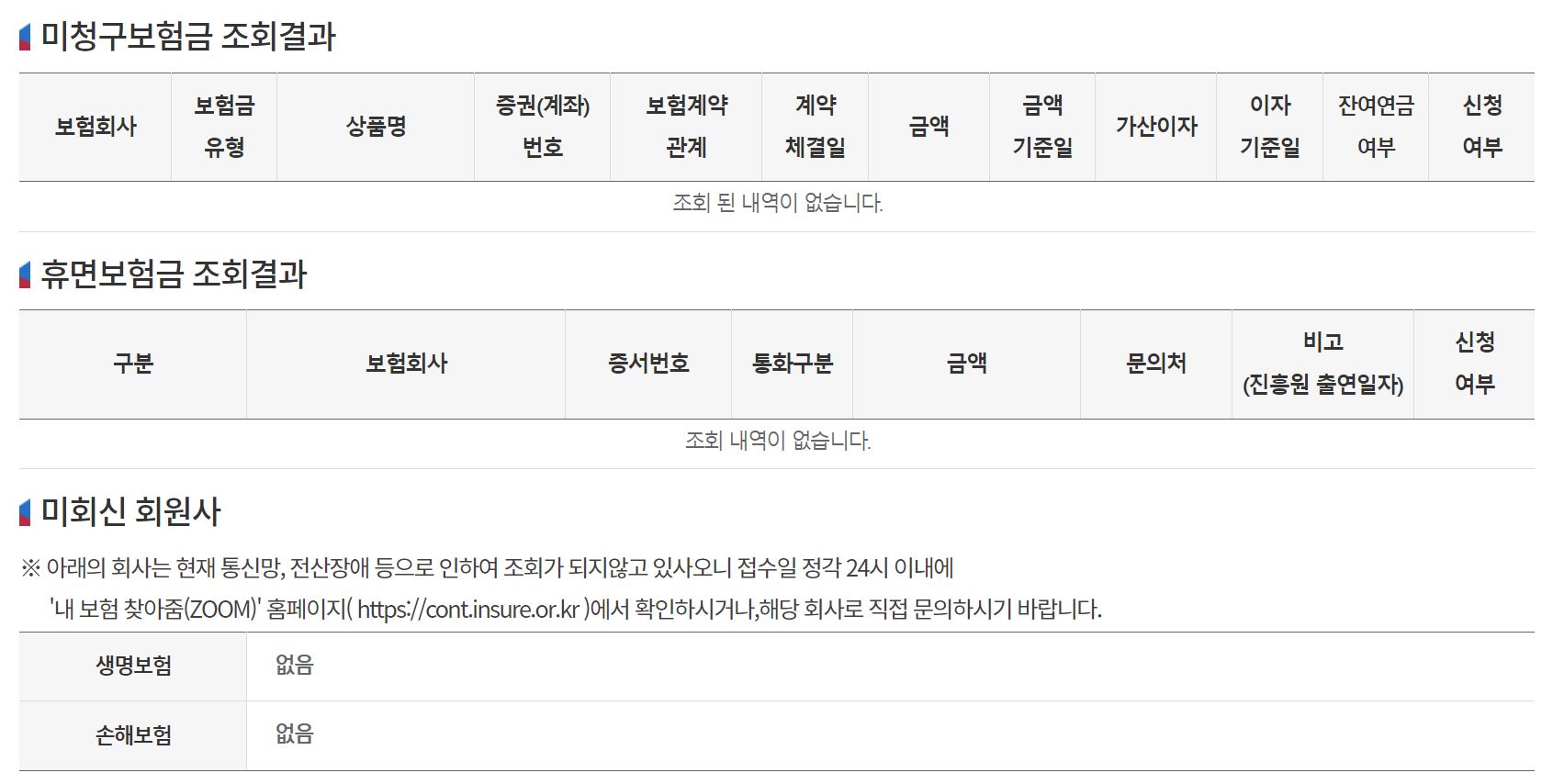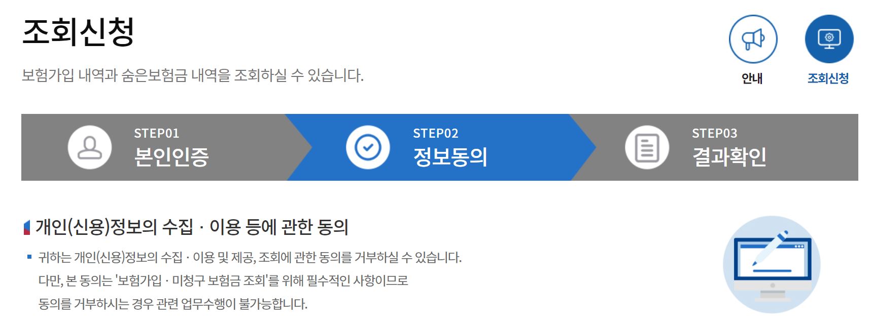 생명보험 및 손해보험 가입내역 및 미청구보험금 조회:실시간 제공