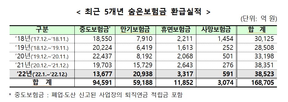 - 보험계약 만기도래, 중도보험금 발생, 휴면보험금 발생, 사업장 폐업·도산 후 찾아가지 않은 퇴직연금 적립금(미청구 적립금) 발생 등