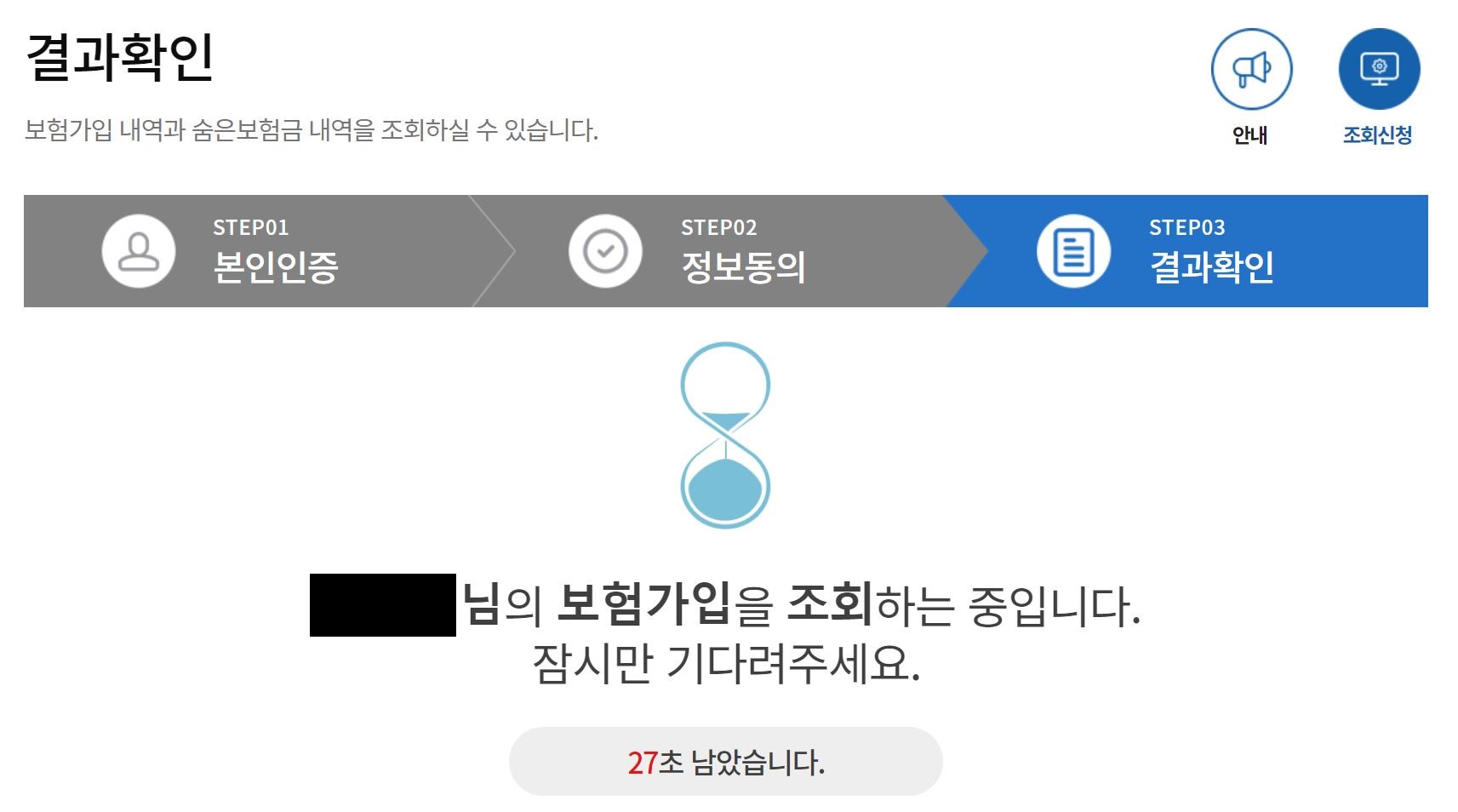 단, 새마을금고, 우체국, 신협, 수협 등에서 가입한 공제(보험) 상품은 조회되지 않음