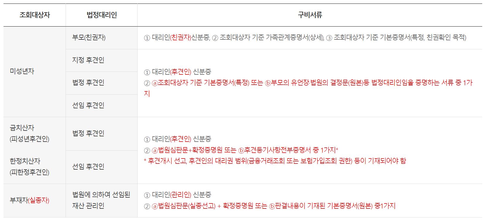 후견인 방문 시 대리권 범위(금융거래조회, 보험가입조회 등) 증빙 필수