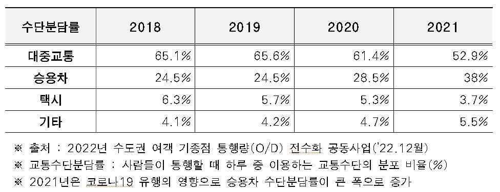 - 매년 감소하고 있는 대중교통 이용률을 끌어올리는 계기가 될 것으로 기대.